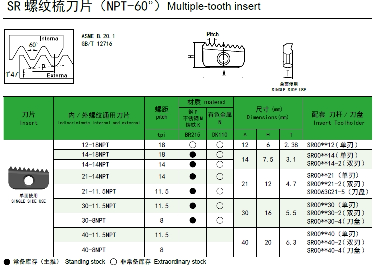 NPT-60°螺紋刀-SR系列
