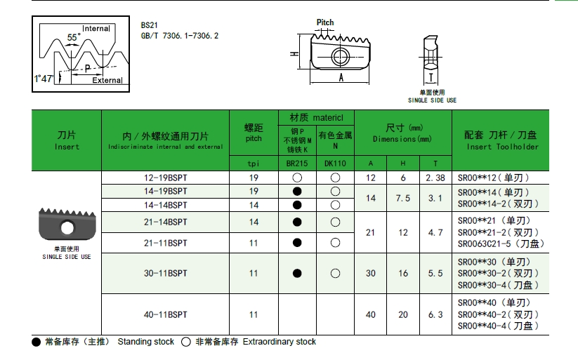 BSPT-55°螺紋刀-SR系列